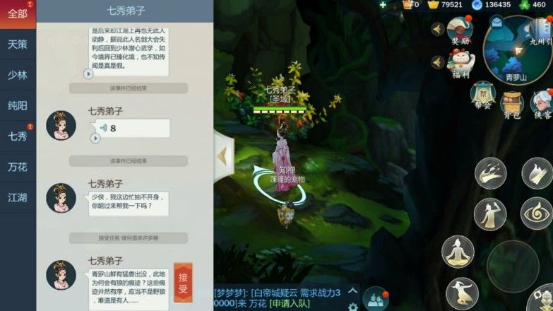 ps:宝宝在到每个地图的第一时间都会把地图路引石风景和宝箱全开完,结果没接到任务,今天醒了看见楼上小天使分享的方法都懵了,难道是我太非,于是跑到青萝山整个地图逛了一圈,连密室都进去好几次但是然并卵。