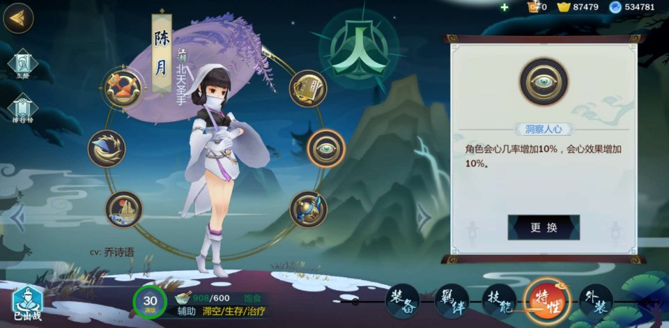 1,pvp特性选择:陈月这次天纵奇才特性无法移除,对于pvp来说,相当于自废一个孔。而每个角色顶多只能有六个孔位,所以pvp的特性选择就尤为重要。