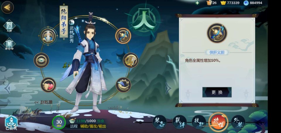 侠肝义胆[10%全属性加成,基本每个角色都需要的特性]