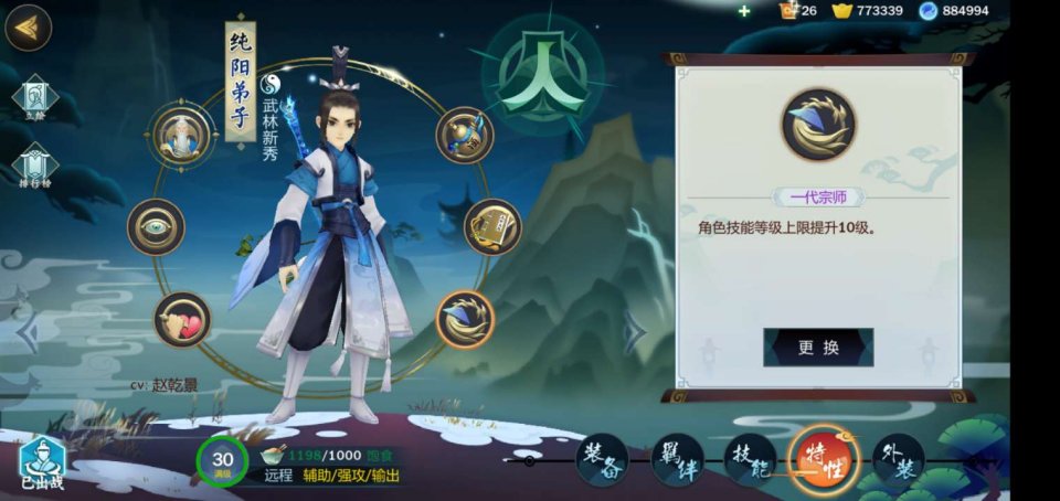 一代宗师[技能等级上限增加10级,强化纯阳弟子的属性和技能伤害]