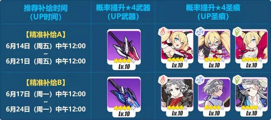 2)每十回精准补给内必出一件★4武器或★4圣痕。