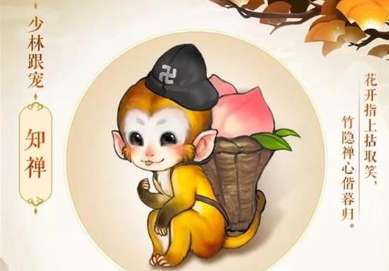 少林的跟宠是一只小猴子,头上还戴着一顶小僧帽,水汪汪的大眼睛以及吐出的小粉舌,没想到少林门派的跟宠居然是这样俏皮可爱的形象。