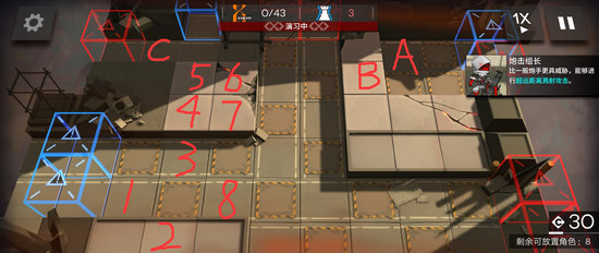 7、在6号放置高速单狙,朝下,迅速在B放置阿米娅,打完撤回或打不完补一个工具人清理掉再撤回