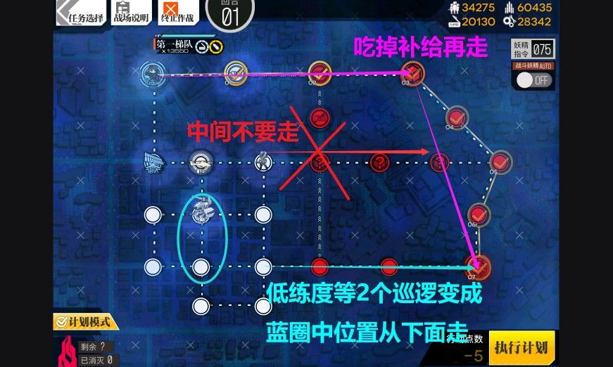 低练度等2个巡逻单位变成蓝圈中2个位置从下面摸过去