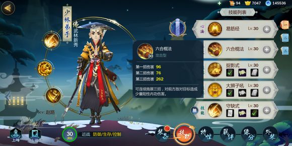 第三个技能:守缺式。对3尺内目标造成伤害,可空中施展。少林弟子主要输出技能