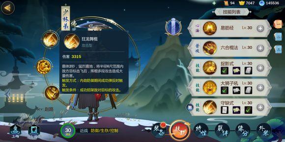 好啦,少林弟子技能介绍就到这里啦,技能介绍完了干货还没完哦,下面跟着小醉一起再来梳理一下技能及秘籍的选择。