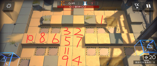 8、在8号放置单法(如用阿米娅,则1技能最好升满,或者选择2技能),朝右