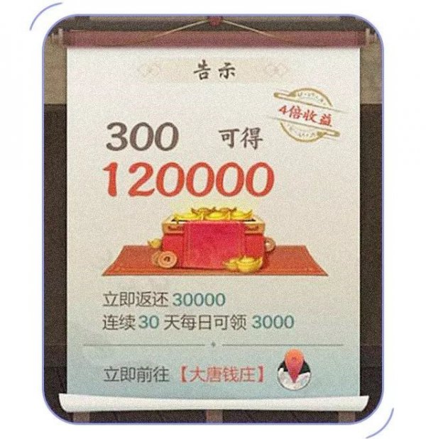 大唐钱庄隆重开业,稳赚不赔的理财产品了解一下~4倍收益,连续30天每日可领3000,走过路过不要错过!