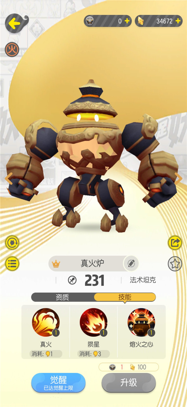 真火炉属性为火,被水和毒属性克制,输出输出型妖灵,在面对敌方是多肉坦阵容的时候有奇效。