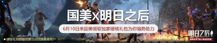 活动期间,玩家下载国美APP,并在APP内的618活动主会场领取专区获取《明日之后》国美专属礼包兑换码。