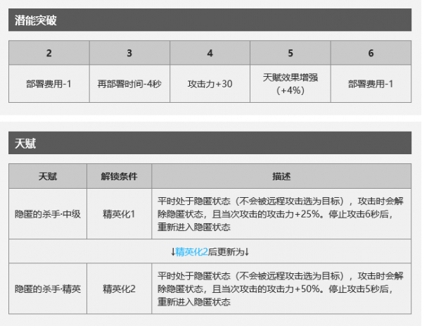 2技能与精2后被动形成联动,开启后5.2s攻击间隔完美触发被动加攻 杰哥不在场的情况下 ,7级效果为60%,与被动相加,为110%攻击力加成,在精20级的情况下,每次出手都是1581的攻击,不仅是源石虫杀手,对于敌方的中低甲单位如术士,魔剑,萨卡兹都有很高的伤害,4-7的红术士只需要戳2下。一般是高台输出位置较少,或者高台位置较差,我会使用2技能,这种情况直接放在重装之前就可以了,如果携带奶盾,赫默这种治疗范围较大的干员,和重装隔开一格提前攻击也行。特殊地图如近卫芯片2可以通过站位,来让狮蝎面对远程也不需要奶盾/无人机的照顾,狙击只会先打银老板,走出攻击银老板的范围后马上又开始打王小姐,只需要在高台上横放一个群奶就足够。2技能8-10为每级增加10%攻击与1持续时间,个人同样觉得性价比不高。