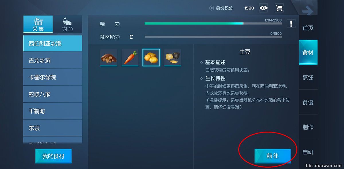因为土豆是比较常见的烹饪食材,所以很多地图都可以获得,包括西伯利亚冰港、古龙冰洞、蛇岐八家等