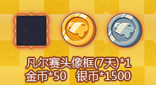 签到25天:凡尔赛头像框(7天)*1、金币*50、银币*1500
