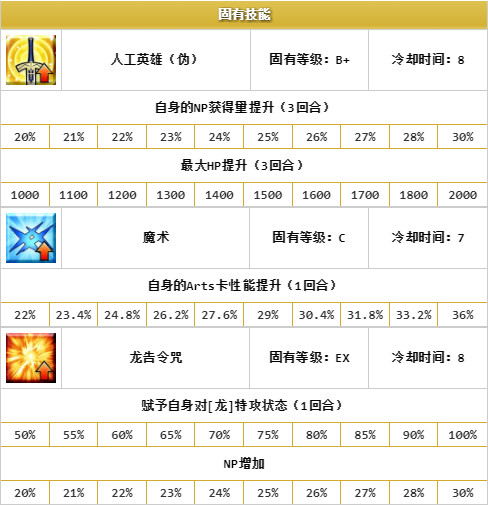 自身的NP获得量提升(3回合),最大HP提升(3回合)