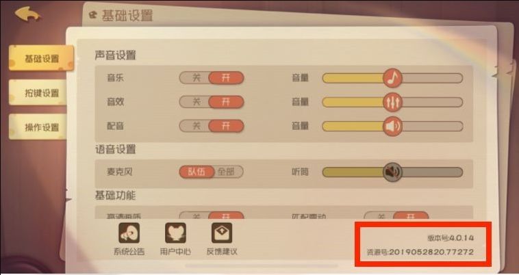 A:如果小伙伴们在游戏中遇到了BUG,还请在大厅界面点击右上角的设置-->反馈建议,将自己的昵称、ID、遇到的问题/想提的建议、以及版本号和资源号(在基础设置右下角会显示你的版本号及资源号),一起反馈给我们。