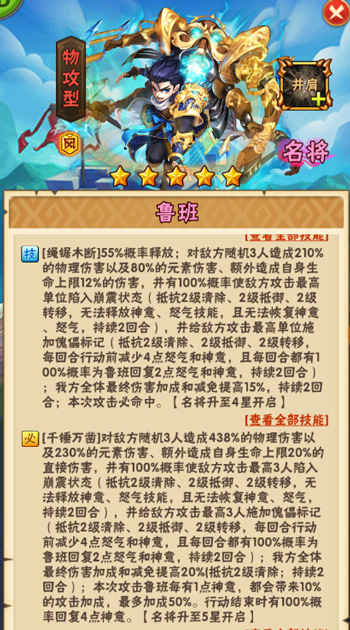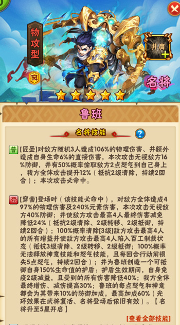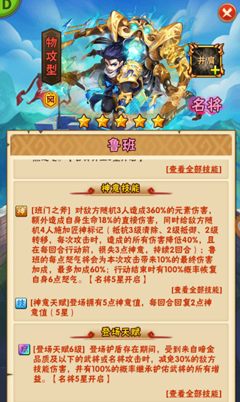 少年三国志彩金名将鲁班上线!多重控制技能+彩金特色强力控敌