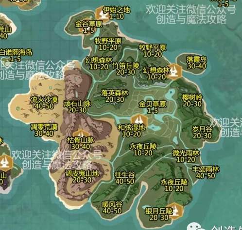 创造与魔法地形分布图:地形、等级分布图大全