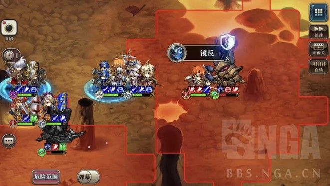 1回合,雷丁往上走到危险区边缘开神卫,莉亚娜给雷丁福音;艾尔文往上走开超绝,露娜进左边光圈学援护增伤,奶骑去右边光圈学援护眩晕。