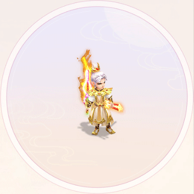 身香槟色的绸制底衫,配上大片金色的帅气外裳,袖口束起尽显干练的武士气息。袖口和肩膀的设计借鉴了盔甲的概念,在帅气之余更凸显了一种武将的刚毅,金色的云纹又让衣服多了一丝华丽和时尚。胸口和腰间镶嵌着的红色宝石熠熠生辉,配合束发的金色头冠,让整套衣服尽显华贵。除了精致的细节设计之外,衣服的特效更是金光四射,无论你是哪个种族,穿上以后瞬间宛如天兵天将一般,自带华光宝气,举手投足都好似战无不胜的战神一般,令人景仰不已。