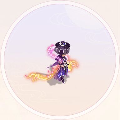 此次的新装头饰相当别致,是一顶垂坠着面纱和珠串的纱帽,帽子正中的银色羽毛装饰更是镶嵌了一颗蓝色的巨大宝珠。除了特别的头饰之外,此次阿修罗女装的细节也设计得相当精美,而且充满了异域风情。衣裳选用了质感高贵的紫色,巧妙的凸显了女性的柔美和神秘,上身是小露背的背心设计,配合薄纱制作的披肩和长手套,既庄重又显灵巧。下身的紫色纱裙配合着华丽的的环佩腰带装饰,如同画中走出的女神一般,宝气十足。这套美丽的衣衫配合特效更是气质非凡,行动中裙裾宛如羽毛一般纷飞,紫色的薄纱随着动作轻轻飘荡,纱帽上的珠串也摇曳生姿,让每一个女性角色都能显得宛如神女下凡一般,仙气十足。