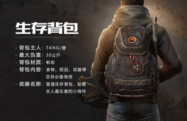当大灾变发生时,城市中的人类都在尽力逃离感染区。在他们的背包中,昔日那些奢侈的爱好,将不会再有任何位置。每个部位所安放的,都是能救命,或者能在关键时刻起到重要作用的东西。食物、药品、纱布、绳索、多功能刀具、生火器具、轻薄保暖的衣物,这些都是在与末日世界对抗中,必不可少的物资。而承载它们的,是如同生存者身份标志一般的背包。