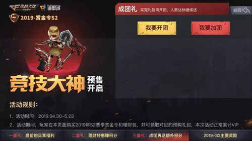 这次的赏金令预售与往期不同的是推出了全新的拼团操作,战友们在活动期间通过指定页面或游戏内购买S2赏金令预购礼包后,即可在活动页开团或加入好友的团。