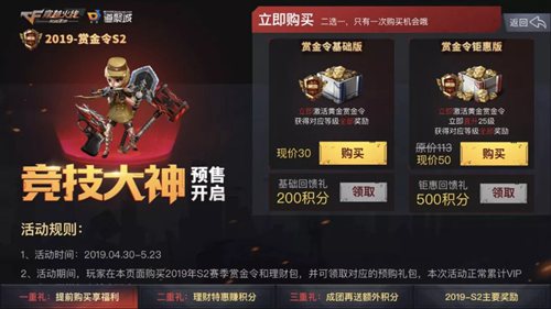 和S1赛季的预售活动一样,本次S2赏金令的预售分为“基础版”和“钜惠版”两个礼包。