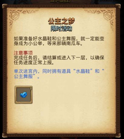 单次迷宫内,同时拥有道具水晶鞋和公主舞服!