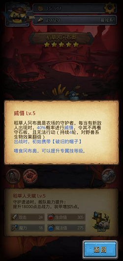 可以看到稻草人的技能和雪人有点类似,但控制回合比雪人的要长,同时对野兽系翻倍,长达8轮的控制,入手之后在野兽多的图中就可以为所欲为了。