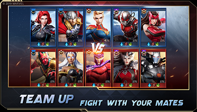 官方表示,由於团队合作一直以来都是获取胜利的重要因素,所以在《漫威 超级之战》之中玩家可以自由自在的选择喜爱的超级英雄,同时透过不同的组合来征服对手。不论是幻视(Vision)与绯红女巫(Scarlet Witch)这样的合作夥伴、钢铁人(Iron Man)与黑豹(Black Panther)的富豪组合;抑或是独眼龙(Cyclops)与万磁王(Magneto)这样的竞争对手,都可以成为《漫威 超级之战》战场中的强力队友。