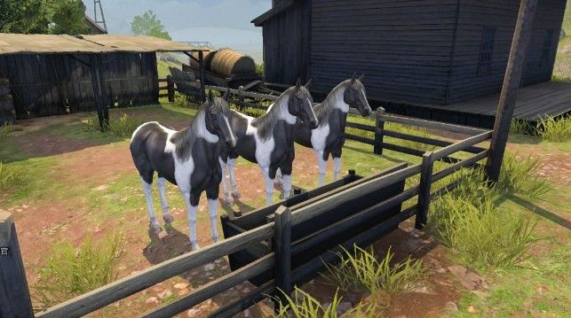 红杉镇里有野马群和阵营专属的马匹,野马群目前在野外,共发现了三种马,一是白蹄棕鼻“夸特马”比较常见的马匹。