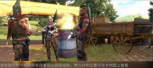 进入地图后,会有两大NPC在这里欢迎幸存者的到来!分别是两股势力NPC:护卫队的情报专家亨利以及强袭帮军需官,在完成与他们的对话后你就会发现原来这里已经被这两股势力控制着这个西部小镇。
