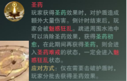 4. 一定要躲避boss 在面前出红圈的技能【魑瘴魅毒】,被击中即获得混合毒(如左图所示)。所有人立刻远离该中毒玩家所在位置,少林把怪拉走