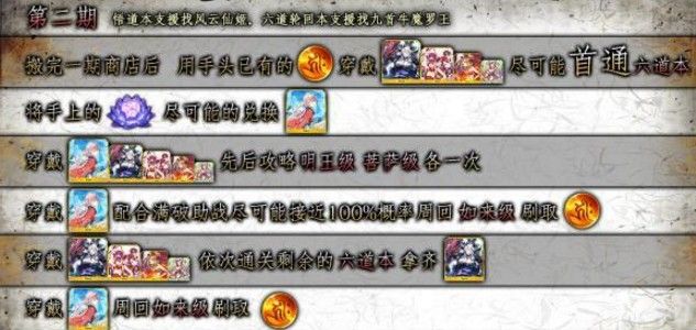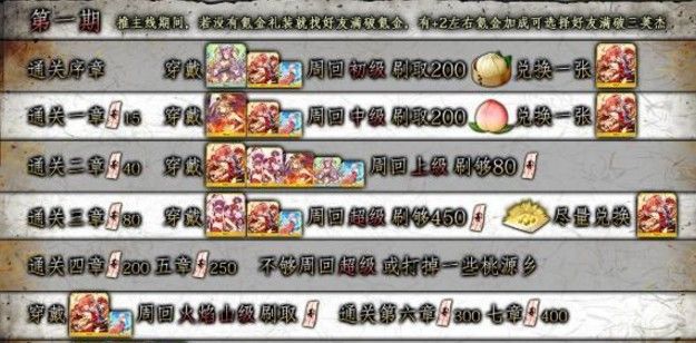 可以看出一期中,三材料都掉的天竺级在商店兑换物上是有着绝对优势的。所以在解锁完一期关卡后,我们就是火焰山级穿三英杰刷门票,然后穿氪金礼装去消耗门票的天竺级搬商店。