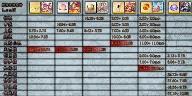 而自回体部分这次由于初见以及二周目玩家情况不一样,以及上次是否满破了风云仙姬等变量的影响,不大好进行计算,不急的话依旧可选择前期自回体,最后两天视情况吃体力。当然哪怕你提前吃果子在活动途中就搬空了商店,后面几天的AP也不会很浪费。一期周回搬商店的天竺级心脏掉落为332个符一个,换算成AP哪怕你是初见符只能+7,也是139AP一个心脏,甚至一把可以掉更多,因为恶魔的心脏掉落与商店兑换物掉落共用箱数,脸好掉三四个也不是不可能。另外如果选择刷二期的本,用大莲华换QP也还是可以接受的,这里列出しょっぽ统计的QP收益情况,大家以牛魔王的加成值对照着看右边玉那一栏就能知道40AP能换多少QP。自身平铺加好友满破即使没有加成英灵,也起码是40AP换140WQP。所以想肝的朋友如果对QP和心脏感兴趣也可以适当提前吃下体力。