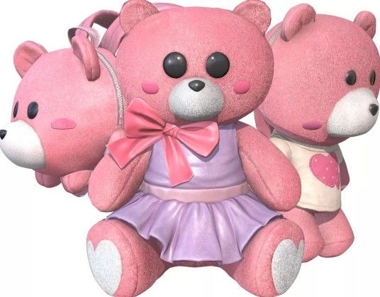 女款萌熊背包,是一只粉色的小熊身着连衣丝裙,脖子处是可爱的蝴蝶结~