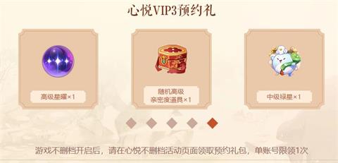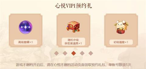 心悦VIP1:高级星耀*1、随即中级亲密度道具*1、初级福星*1