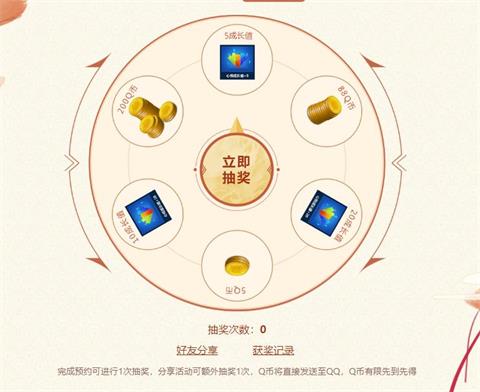 通过参与抽奖,玩家将随机得到5/10/20心悦值或5/88/200QB中的任意一项。