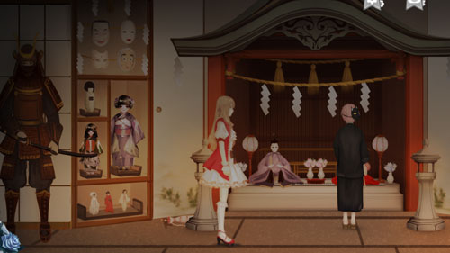 其实一开始我以为是一个恋爱向的解密游戏,专门喂狗粮的。体验过后发现事情并不简单。游戏从一开始就似有似无的透漏着诡异的气氛,不合时宜的音乐、奇怪的人物对白、在女主触摸的时候似乎动了一下的人偶熊、出现在和风馆的洋娃娃……