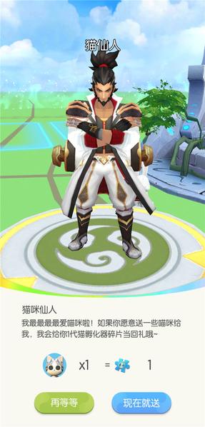 如果繁育出了基因不是特别优秀的猫,御灵师们可以去寻找神行术世界中的猫仙人,在猫仙人处可以用专属猫换一个一代猫孵化器的碎片。
