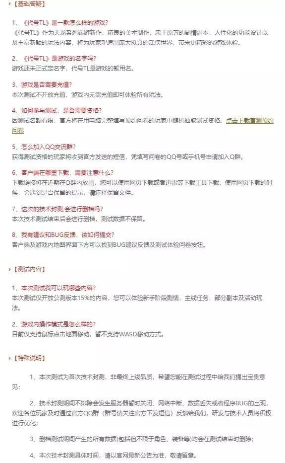 关于《代号TL》方面的相关说明,更有网友表示先后在贴吧和wegame上看到过。这次新天龙游戏还未正式定名字,《代号TL》只是游戏的暂用名,并且《代号TL》测试名额非常有限,许多玩家表示非常遗憾不能一睹新版天龙八部端游的风采。