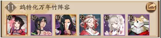 鸩竹永动机的应用之一,对练度要求极低,除了鸩必须6星满级满二技能以外,其他式神3星4星都可以上,但是只能用来打万年竹鬼王。