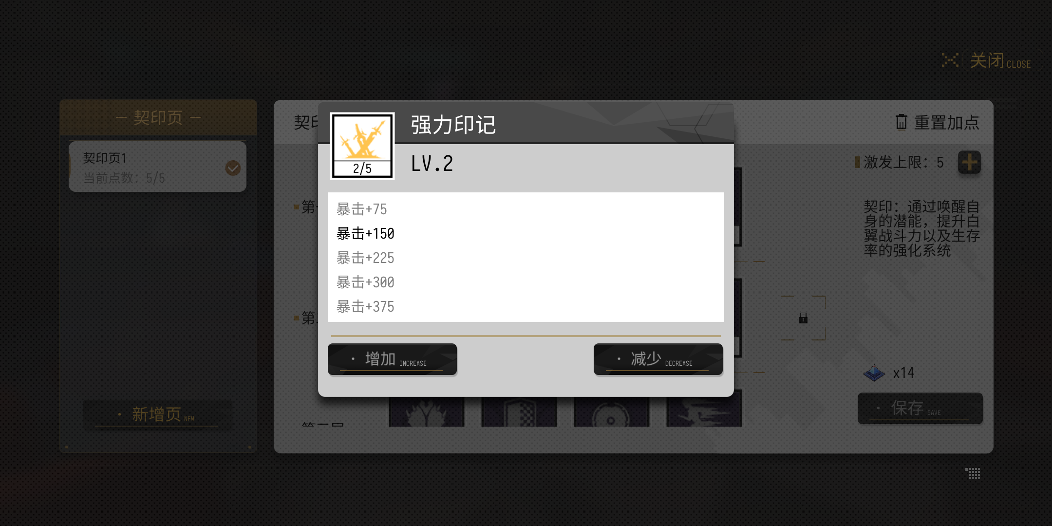 首先主界面右上角点击角色就能看到契印选项了,点开了就能看到一个个小格子,这些都是玩家朋友们可以加强的属性,一共可以解锁五层,每一层中都可以加强不同的属性,大家可以根据自身需要来配上点数。