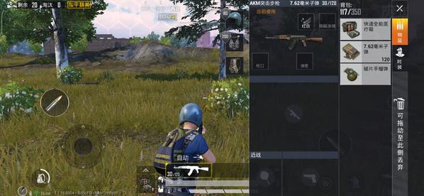 2、了解枪械的打法,在该玩法中当我们落地后就可以获得一把枪、120发子弹、一个快速全能医疗箱(只需4秒)、一个破片手榴弹。而其中只有枪械是随机发放的,所以玩家需要熟悉用法,毕竟每把枪的后座力、伤害值什么的都会有所区别。