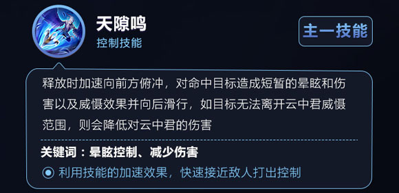 一技能:命中敌人后可以降低对自身的伤害,还可以有眩晕控制。