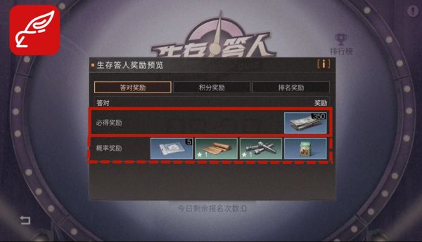 当分数达到100/250/450时,将会获得一份积分奖励,背包满时积分奖励将会通过邮寄发放。每日22:30时,将会通过邮件发送前十名奖励,第一名可获得金色称号生存答人专家。
