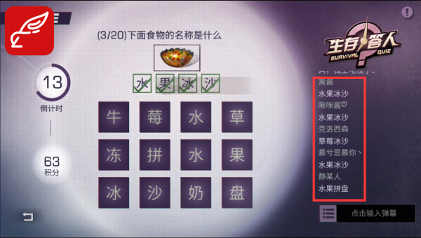 在屏幕右边会实时发出弹幕,如果没有参与答题的小伙伴也可以在旁边给出正确答案进行提示哦!