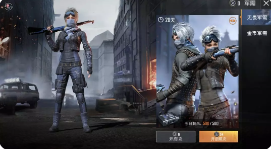 都市猎人套装的获得方式为无畏军需,可以通过游戏主界面→军需→无畏军需,即可看到这套酷帅的“都市猎人套装”。