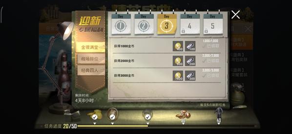 比如小编如今出的3天就一共有出现了8个任务模块,其中的第一天的累计登陆就是需要登录游戏,第二天的战场排位就是需要到达对应段位,第三天的金银满堂就是需要获得金币等。