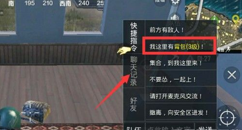 如图,大家在标记前要把枪口的准心(十字准心)对准所需要标记的物资,然后在右上角的小地图下方就发送语音或者指令的选项即出现第二张图的标记物品的指令。点击即可发送所需要的物资的指令标记了。